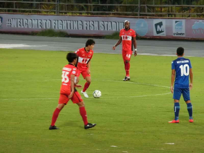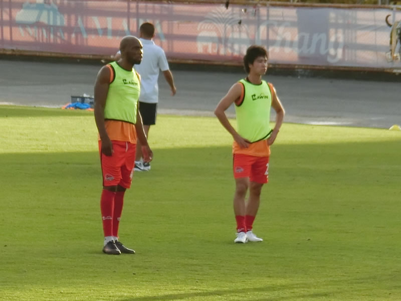 タイサッカーではよくあることなのですが、外国人選手が数名以前足を運んでからの5か月間の間に変わったらしく、フランス人のガタイの良いディフェンダーが加わってました。そして、それもあり、寄特直人のポジションは、ボランチの位置になり、ようやく本来の寄特直人の持ち味が良く出せるような位置でのプレーが見られたのかなと言う試合ですね。