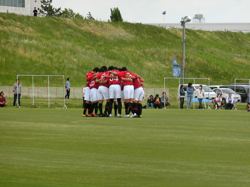 相手のメンバー構成やどのような選手が武南高校Bとして組まれているかはわからないのですが、試合スタートの段階では、最終的な得点差がついたような浦和が圧倒しているという形には見えなかったものの、やや高校のAチームとやる時のような守備に隙を作らないような粘られて攻めても決められないような展開というよりは、チャンスの場面で相手の守備陣でコントロールミスなどが出て一気に決定機になるような形が多く感じられました。