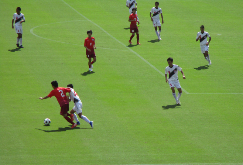 もちろん受けに回ることも多いのですが、前を向いてゲームを作れている時間帯では、前日の2回戦で埼玉代表・西武台を4-0と大差で下している勝ち上がりもなるほどと頷けるところです。