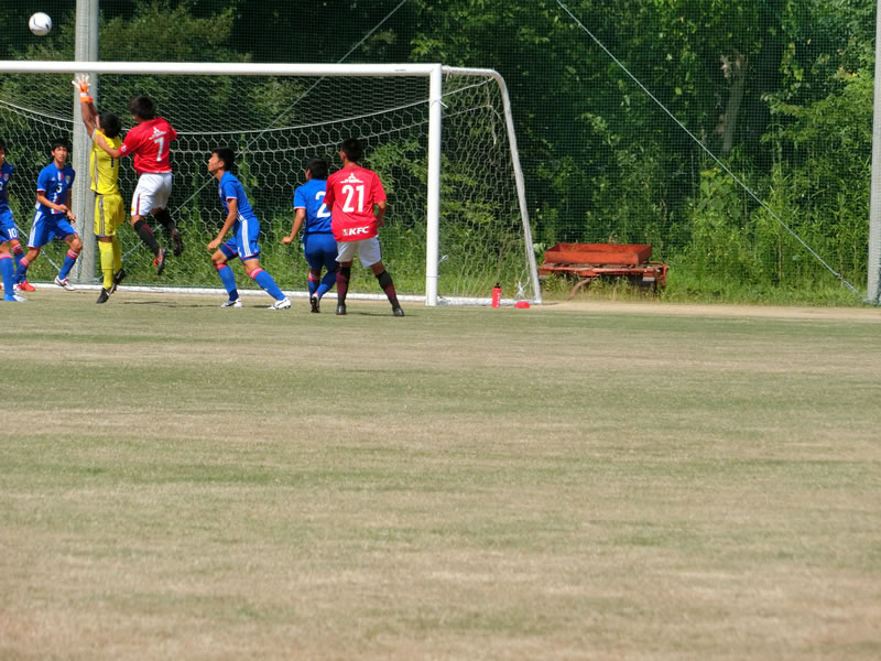前半の攻撃で惜しい形を上げていきますと、前半4分にコーナーキックのチャンスで4番玉城大志からのクロスに相手キーパーと競り合う形で7番與那覇航和がヘッドで狙うもここは、相手キーパーがしっかりキャッチ。