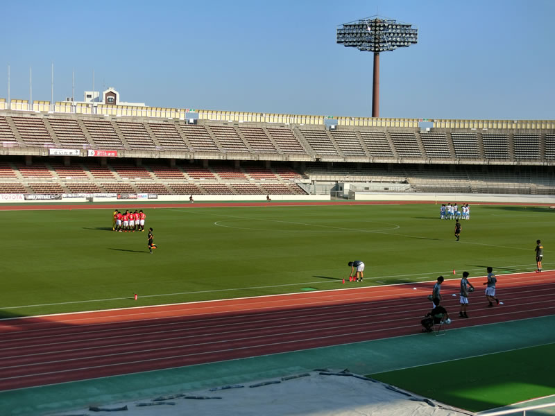 攻めながらも決定機が作れないという状況が多い前半でしたが、38番松村大也の右サイドからの前線へのパスに抜け出した37番堀井真海がファールを受けてのセットプレーが何度かあったり、39番盛嘉伊人が裏へ抜けながらパスを受けようとしたところで相手に倒されてフリーキックを獲得するなど、セットプレーの獲得数は、前半だけでも結構あったと思いますが、ゴールは奪えず0-0で前半終了。