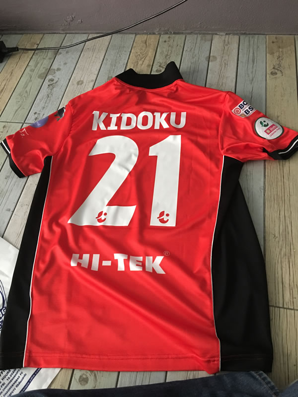 スタッフに英語が話せる方がおらず、写真を見せて、寄特直人の名前と番号入れてほしと伝えたところ「キドウね、OK」みたいに言われ、タイだと発音が難しいのかな、オフィシャルショップなのに、KIDOUとかに名前がなってたらどうしようと思いつつ、出来上がりを見たら、ちゃんとなってました。