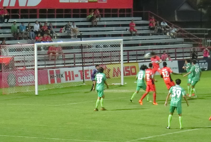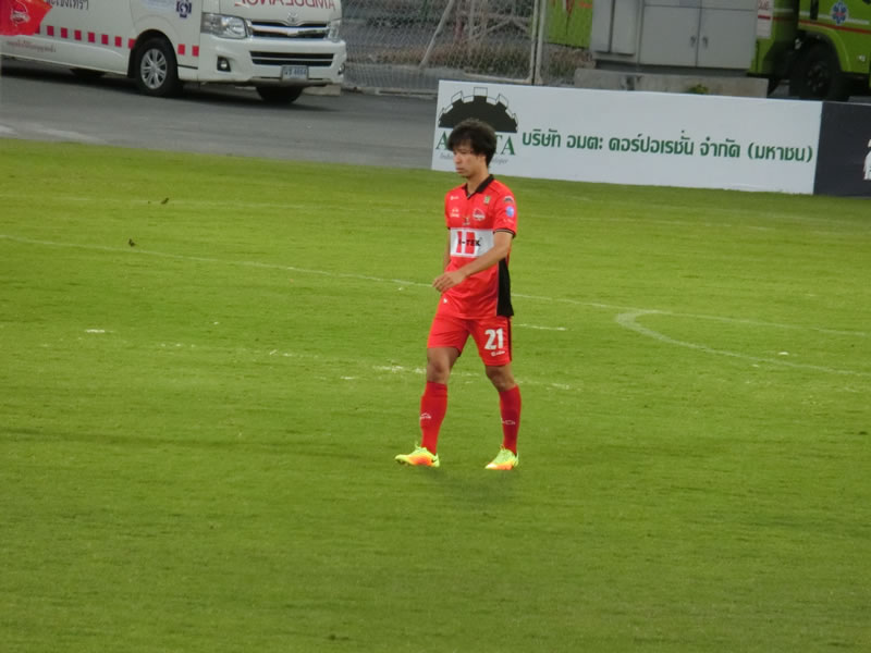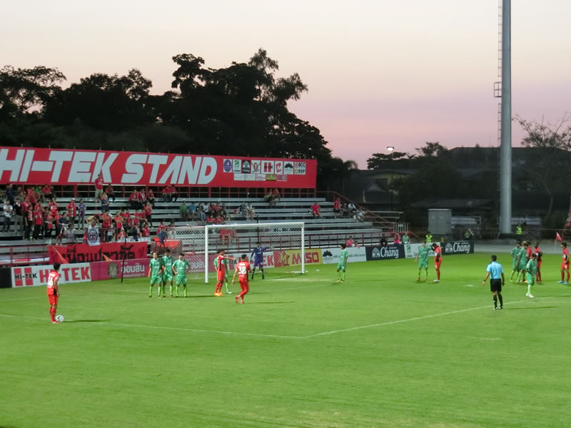 また、面白いことに、試合前に聞いていたリーグのルールでアンダーカテゴリのタイ人選手を2名(聞き間違えていたらすみません)をスタメンで起用する必要があり、そのポジションがサイドバックで、やや簡単にやられる場面が多いとかで、実際どうなんだろうと思ったら、試合開始早々に、簡単にサイドを突破されて、失点するという場面を見て、「なるほど、言っていた通りだ!」とか思ってしまったわけです。