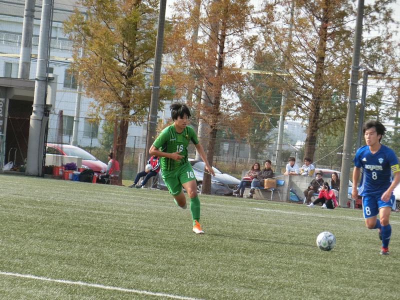 試合自体は、前半は、やや青山学院大学ペースで、ピンチになる場面も多くなりながらも、無失点に抑え0-0で迎えた後半に、直接フリーキックでの先制点を皮切りに、影森宇京が自らペナルティエリア内にドリブルで侵入して、ファールをするしか止めようがないというボールのコントロールと体の向きで、見事にPKを獲得し、そのPKを自ら決めての得点。