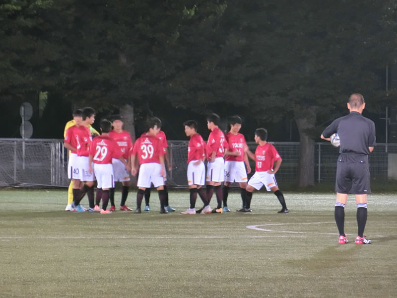 浦和の攻撃では、前半10分にペナルティエリア僅か外くらいまで37番堀井真海が持ち上がり、倒されたように見えたのですが、ここではファールはもらえず。