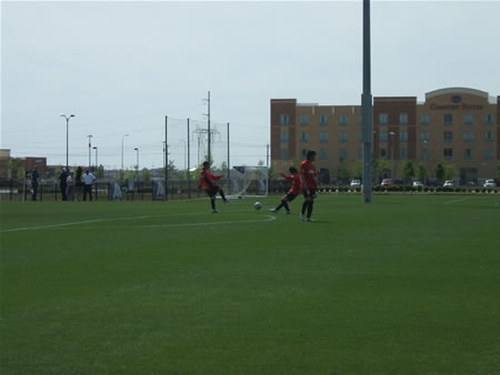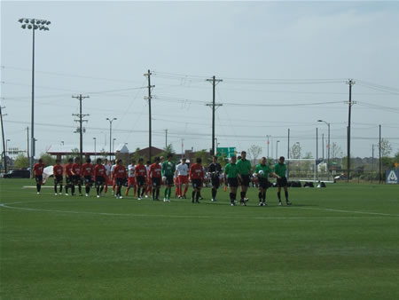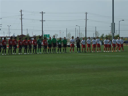 整列の時の写真です。フランクフルトやサンパウロと比べると体格的に見た目小さめのダラス・テキサンズですが、実際体はガッシリした選手が多かったように思います(浦和が小柄ということもありますがw)