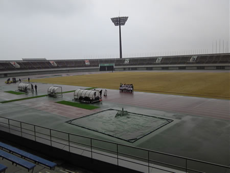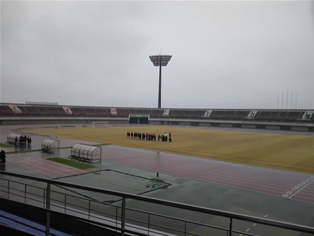 一昨日の準決勝の補助競技場のお隣の陸上競技場で行われました決勝戦に行ってきましたよ。終始小雨がぱらつく肌寒い気候の中での試合となりました。