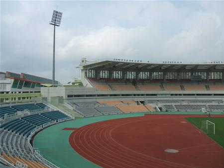 今回は浦和に絡まないブログですが、一応サッカーも絡んでいるっぽいのでアップすることにしたぞ、というものです。先日仕事の関係でマカオへ行ってきました。どこへ行く旅であろうと、とりあえずサッカーにちなんだ何かを見ないと気がすまないブクメは、旅立つ前にマカオのサッカー場をチェック。ありましたありました、マカオスタジアム。16000人収容です。この日は特に試合などはなかったのですが、どこか入れる場所がないか探していたら空いている場所があったのでスタジアム内の写真を撮ることができました。結構きれいです。