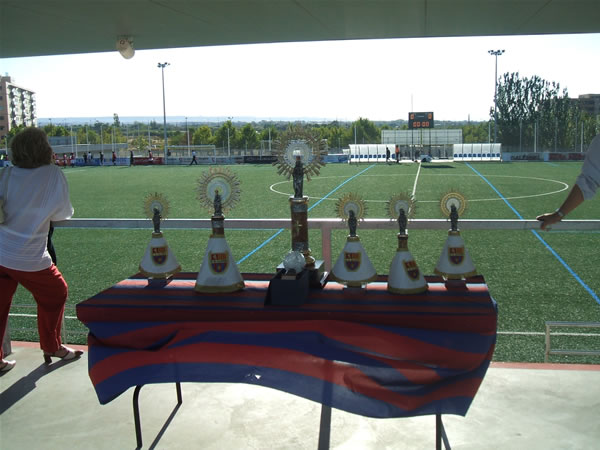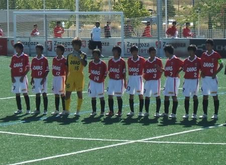 浦和レッズジュニアユースU14のスペイン遠征も最後の試合となりました。3位決定戦の相手は1日目の2戦目に対戦したモラタラズ。2-2の引き分けで終わった決着を勝利で飾って3位を勝ち取りたいところ。最初の写真は順位決定戦からスタンド上にディスプレイされた大会のトロフィです。