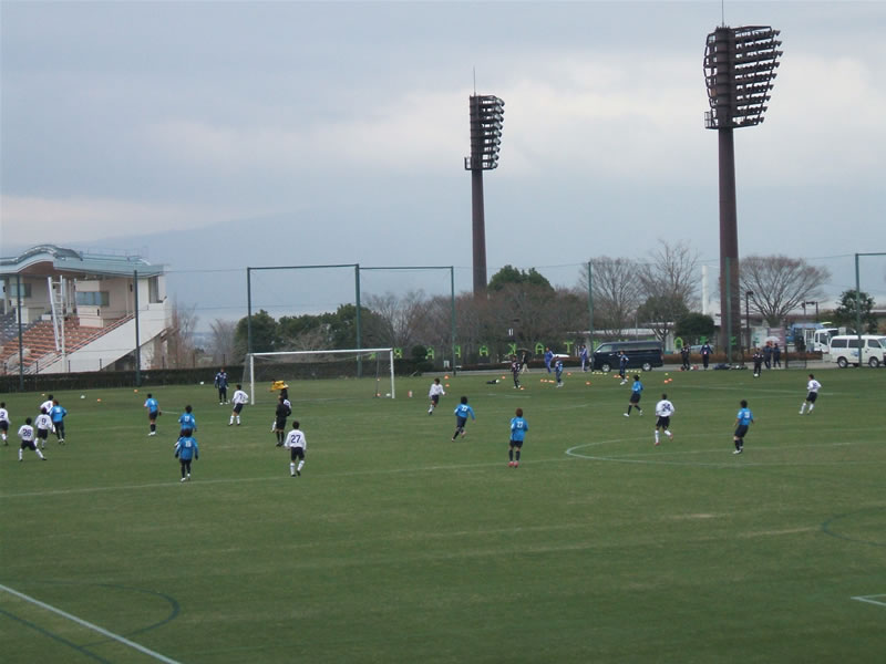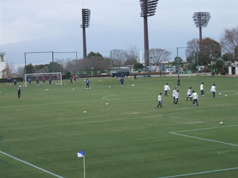 場所は、横浜FCのサイトで発表されていたのですが、裾野グラウンドから愛鷹広域公園スポーツ広場へと変更。昨日の時の栖から沼津への移動となりました。今日はあいにくの曇天、時折雨がぱらつくような気候となっていました。