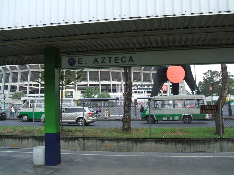 ホテルの最寄り駅の地下鉄1号線インスルヘンテス駅(Insurgentes)から、ピノ・スアレス駅(Pino Suarez)で2号線に乗り換えて終点のタスケーニャ駅(Tasqena)まで行き、ここで路面電車のTren Ligeroに乗り換え、エスタディオ・アステカ駅(Estadio Azteca)まで行きます。
