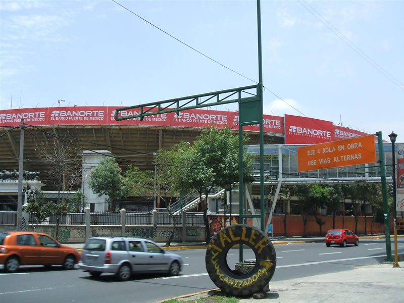 一応、なんというか木に邪魔されて微妙なのですが、左にプラサ・メヒコ闘牛場、右にアスル・スタジアムという夢のような構図が実現されました。。。