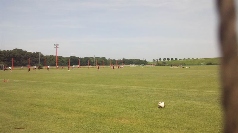 今日は、埼玉大学との練習試合があるということでレッズランドまで行って来ました。試合開始は9:45だったのですが、朝とは思えないくらいの炎天下での試合となりました。しばらく、養生中で使用されていなかった真ん中のグラウンドの養生が終わったようで、久しぶりにそちらのグラウンドでの試合となりました(逆に、土手側が養生に入った模様。)
