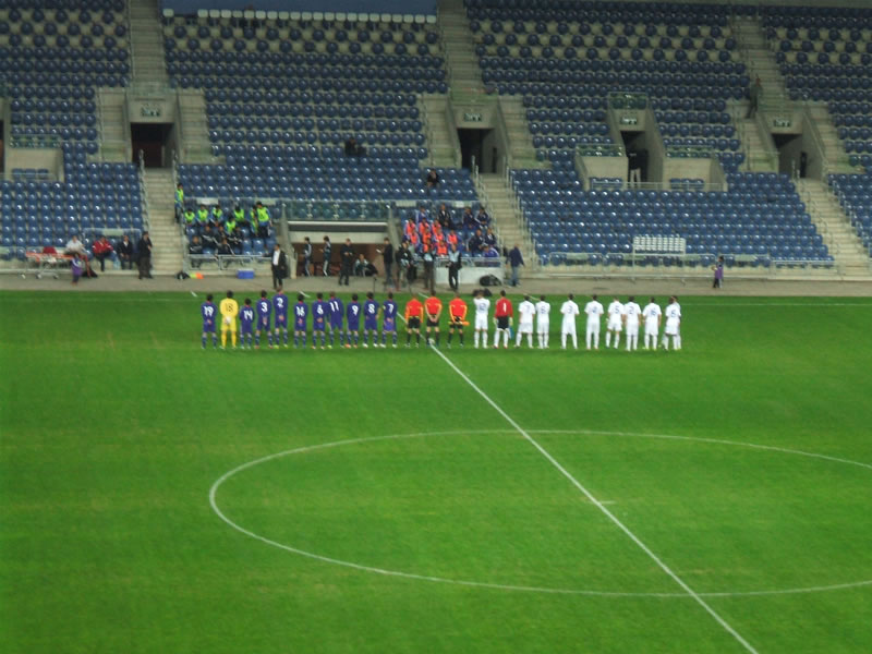 この試合は、ビンヤミナという駅の目の前にある、ペタフ・チクヴァ・スタジアムという新しいスタジアムで行われました。なかなか良いスタジアムでした。試合の動きがしっかり見たいということで、バックスタンドの一番上あたりで観戦していたので、ただでさえぼやけ気味の写真が、今回は更に遠くなっております。ご了承を。。