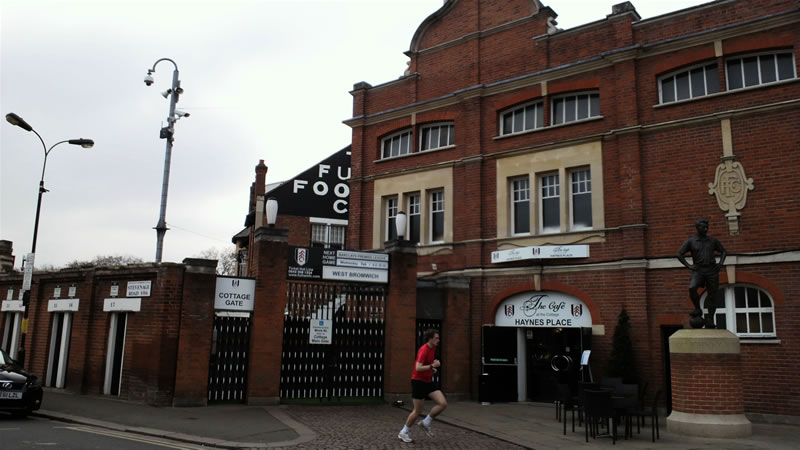 フラムのホームスタジアムとなるクレイブン・コテージは、パントニー・ブリッジというテムズ河にかかる橋の名前を取った駅が最寄りになっているのですが、基本的には駅を降りて橋を渡らずにテムズ河沿いを離れないように進めば行けるのですが、スタジアムを示す看板の矢印が行き止まりをさしていたり、クネクネした道を進めば良いのか、門が空いている公園を抜けて行けば良いのか、正直迷いました。