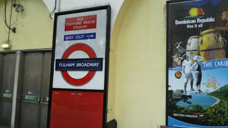 続きまして、チェルシーの本拠地のスタンフォードブリッジに行ったのですが、最寄りが先ほどのフラムの最寄り駅から2駅のところにあるフラム・ブロードウェイ駅が最寄りになります。フラムと入っていますが、チェルシーの最寄り駅です。そして、この駅は駅ビルと言ったら大げさかもしれませんが、駅構内にスーパーやCDショップなど色々な店が入っていましたね。割とこういう駅が少ないので驚きました。