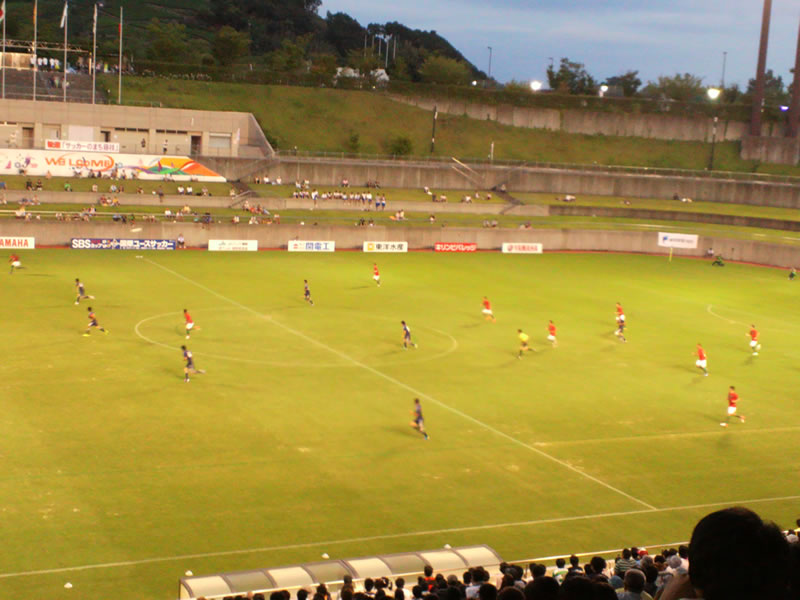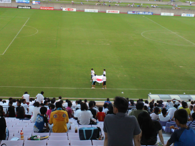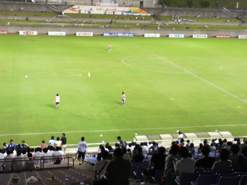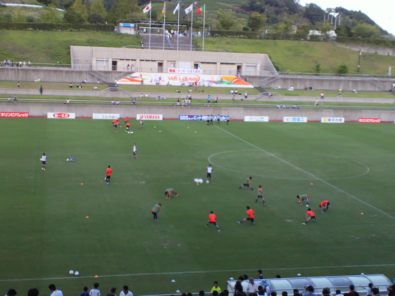 さてさて、会場に着いたのが1試合目の、静岡ユースvsU19韓国代表の試合の後半途中。知人も数人電車などで来ており合流して、U19韓国代表が結構強いとか聞きつつも正直、運転疲れで頭がボーっとしてましたw その試合は、U19韓国代表が2-0で勝利。