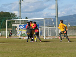 先制点の後も、コーナーキックのチャンスから7番高橋聡史の惜しいヘディングシュートもありつつ、点を取りに来た相手に裏へのパスを通されてしまい決定的な場面を作られるものの相手のシュートはクロスバーに弾かれます。
