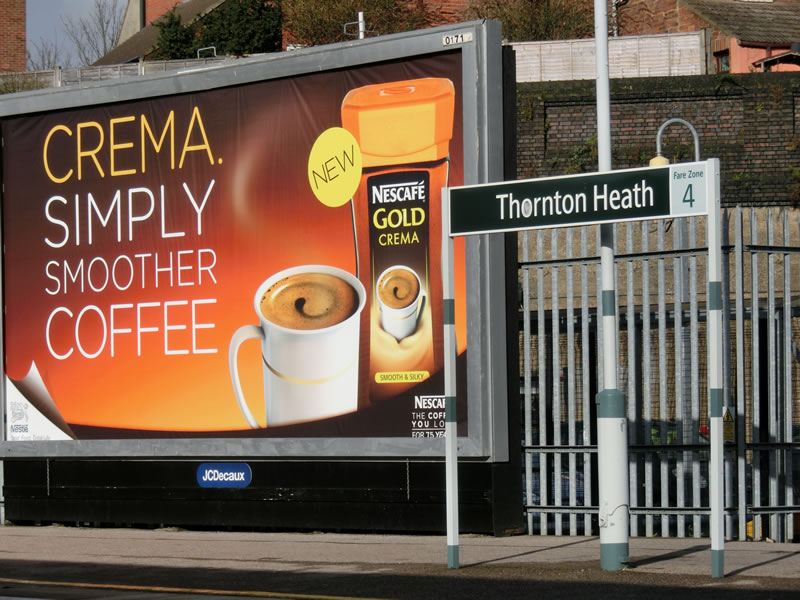 カンファレンスの会場から歩いて近くにあるロンドン・ブリッジ駅からナショナル・レールを利用して移動開始。最初に目指したのは、クリスタル・パレスのセルハースト・パークの最寄となるThornton Heath駅へ向かいます。ロンドン・ブリッジ駅から25分くらいで到着。写真は左から、駅名、駅の壁にクリスタル・パレスのホームだぞ!とありましたので最寄駅で良かったと一安心した写真、右がスタジアムになります。距離にして1キロくらい、15分くらいで着いたと思います。駅のすぐ横にTESCO(スーパー)があったり、食事ができるような店もスタジアムまでの道のりに多くあり(なぜか、美容院が多くあったりして不思議でした)、スタジアムに隣接してSainsbury’s (スーパー)があるため、とにかく買い出しには困らないスタジアムです。スタジアムを一周回ってみましたが、駅から来た場合はそれほどアップダウンはないもののスタジアムの座席によってはゲートまで急な坂を上がっていくような作りになっていました。ちなみに、もう一つの最寄駅ぽいSelhurst駅の方向を指した看板があったので、帰りはそこへ向かおうと思ったのですが、歩いていて、嫌な予感がしたので引き返して元の駅に戻りました。で、帰ってからGoogleマップで確認してみたら、やっぱり歩いていた方向には駅はありませんでした。