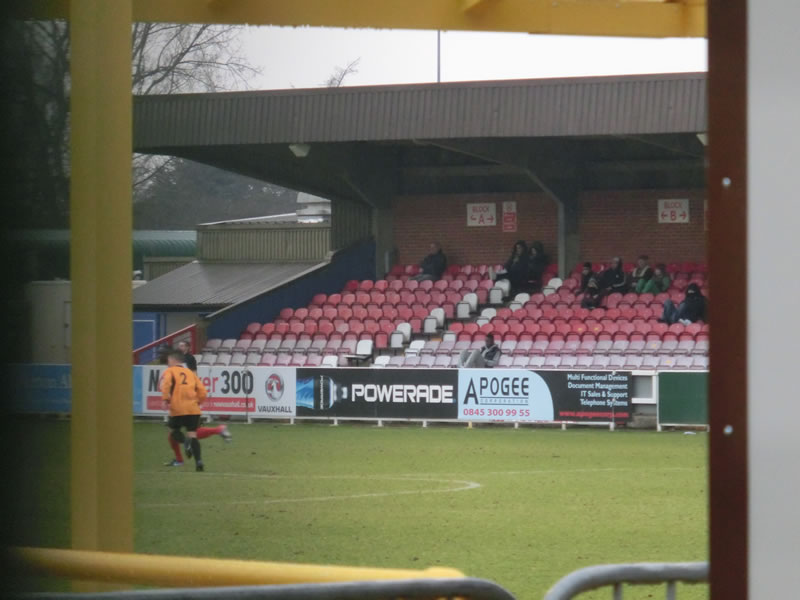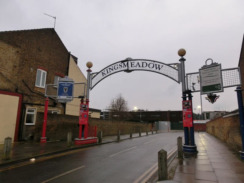 迷わず20分ほどで到着しました。Kings Meadow(キングスミードウ)というスタジアムになります。で、着いてみたらAFCウィンブルドンと共にKingstonian FCという名前もあり、むしろ試合のところには、そっちのチームの名前が書いてあったり(これが最初に載せた2枚目の写真です。)で、何より間違えなく試合やっているんです。