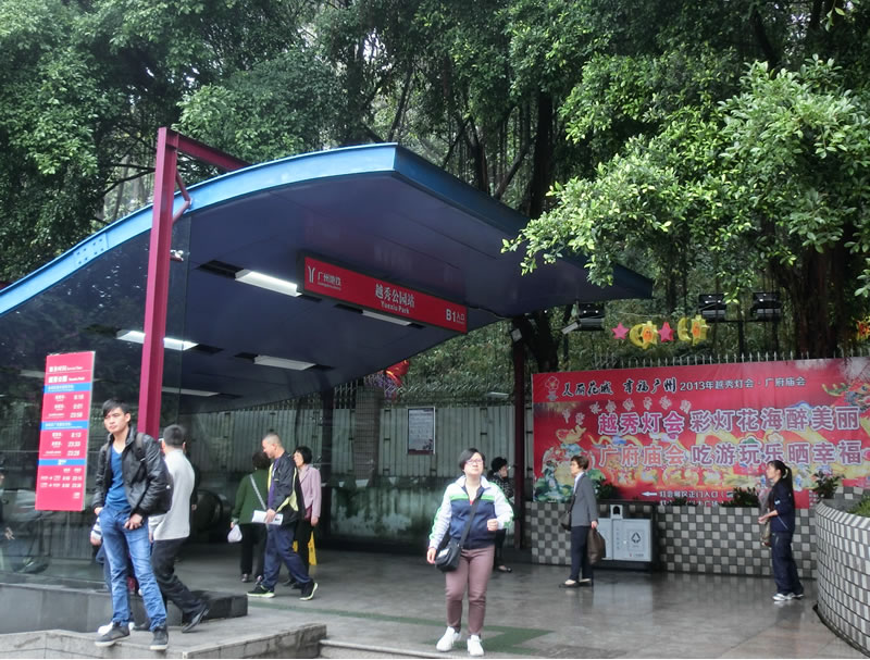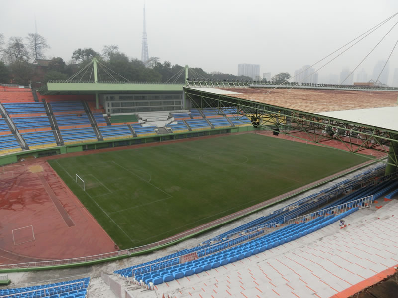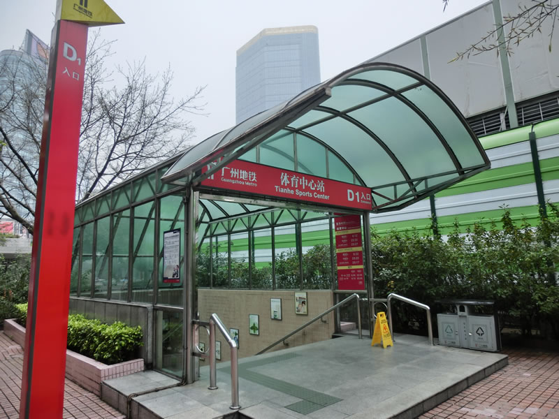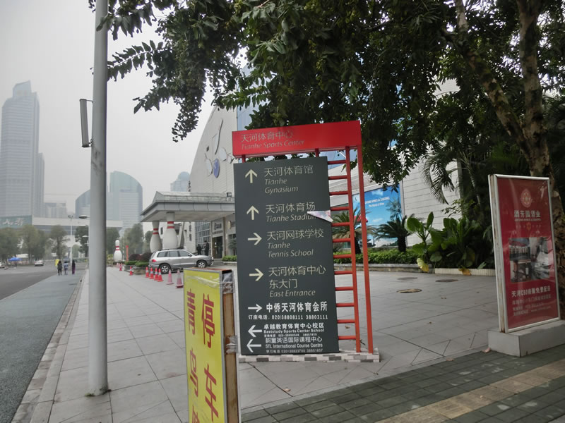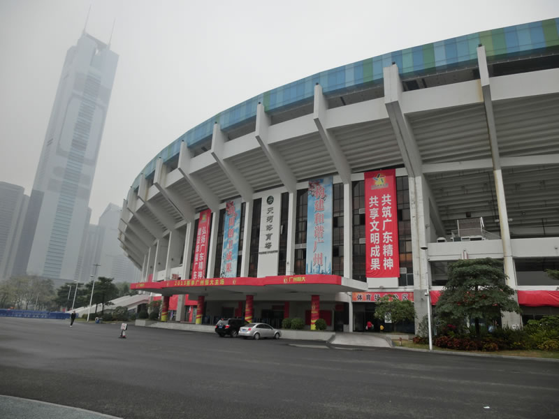最寄りと呼んでよさそうな駅がこのほかにもいくつかあるのですが、せっかくなのでこの施設の名前そのままのTianhe Sports Center駅で降りてみました。正直、広州は大きな建物だらけで、目的の施設がどこなのかわかりにくいのですが、このスタジアムはいろいろある施設の中心にあります。