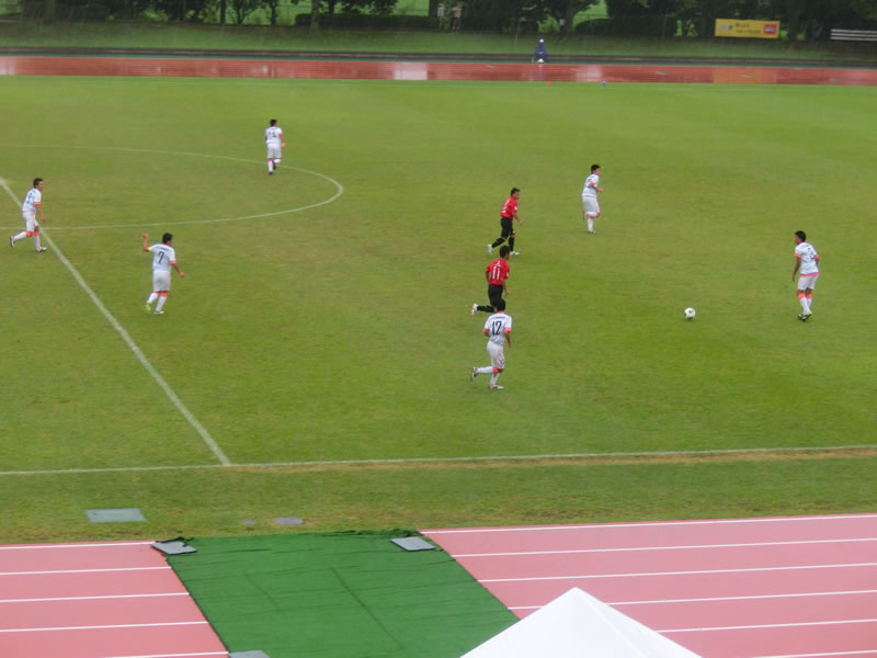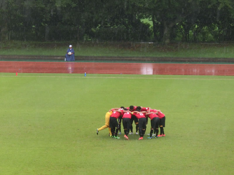 昨日1次ラウンド最終戦を行い、疲労が残る連戦となった今日の決勝トーナメント(ラウンド16)は、そういった体を更に鞭打つようなしっかりした雨の中で行われました。気温という点では、今日も比較的涼しくはありました。