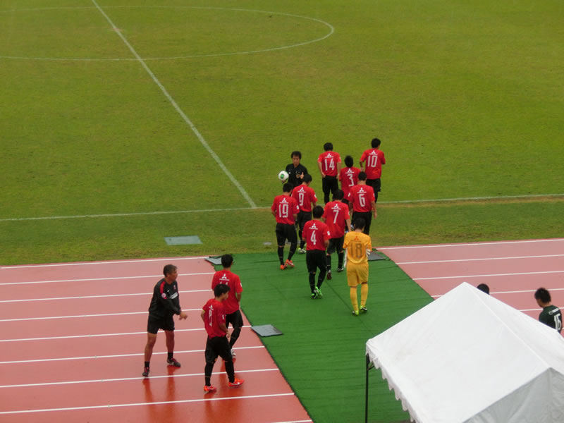 1点を奪うために、延長前半8分に11番進昂平に代えて20番東伸幸を投入。徹底的にロングボールを20番東伸幸に当てる作戦をとり、この狙いに20番東伸幸はしっかり応えて前線へのハイボールに対して、かなりの高確率で相手ディフェンダーに競り勝って落とし、浦和が圧倒的に攻める形を作ります。延長後半途中には、19番橋岡和樹に代えて21番小島良太を投入し、更に前線を活性化して得点を狙いに行くも、決めきれず。一度、27番邦本宜裕が胸トラップで抜け出してゴールを決めた場面があったのですが、これはトラップの時点でのハンドの判定だったのですが、遠目に見ていても手に当たったボールの軌道ではなかったんですね。それでも、遠かったので、ハンドがあったのかなと思ったのですが、近くで見ていた方が言うには、27番邦本宜裕の手ではなく、相手選手の手に最初に当たっていたということでした。