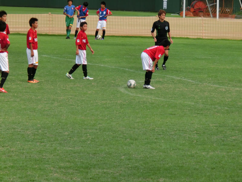 ということで、浦和は2連勝で勝ち点6になりました。同じグループでは、名古屋グランパスU-14が同じく2連勝で勝ち点6と言う状況。得失の関係で引き分けでも浦和が1位だと思っていたら、レギュレーションを改めて確認したところ、この大会は、引き分けで両者勝ち点1という結果ではなく、引き分けの場合はPK戦が行われ、PK戦勝利チームが勝ち点2、PK戦敗戦チームが勝ち点1なのですね。