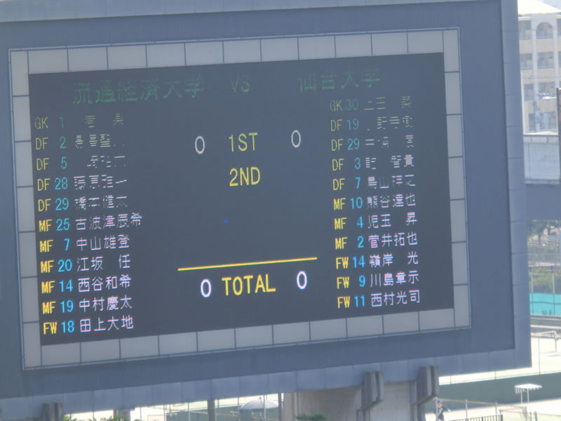 今日の総理大臣杯2回戦は、キンチョウスタジアム、長居スタジアム、長居第2、で開催の試合の中から、第1試合は、流通経済大学vs仙台大学の試合を観戦しました。