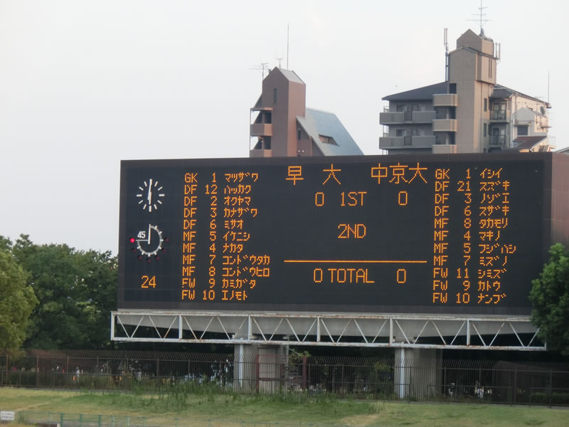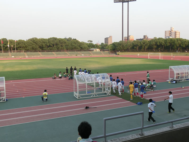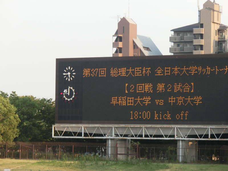続きまして、長居第2陸上競技場に場所を移しまして、18:00キックオフの、早稲田大学vs中京大学の試合を観戦してきました。