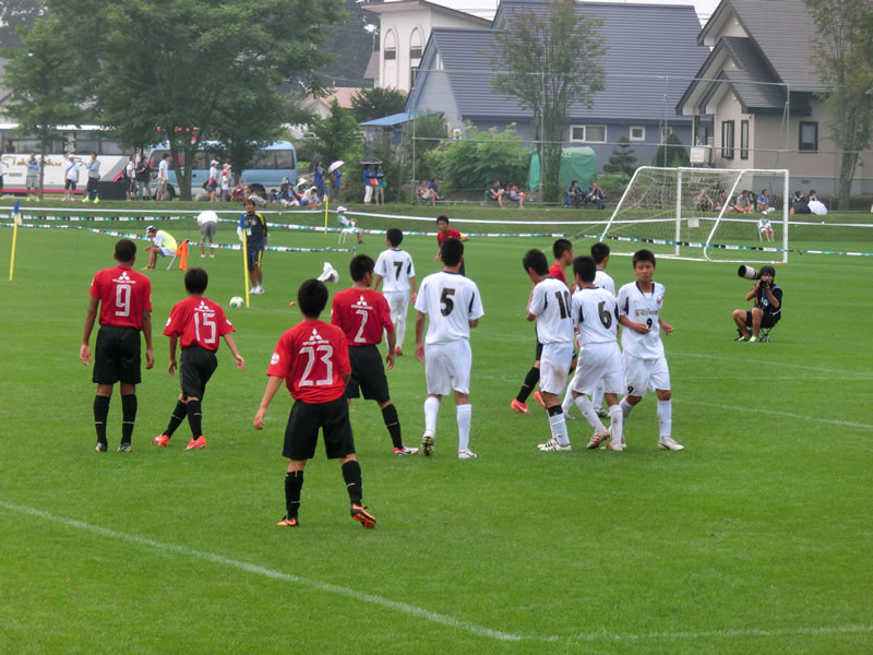 しかしながら、昨日同様に、先制点がなかなか決まらないというのは相手の守備意識の高さがあるのである程度は仕方ありませんが、前半は結局得点を奪えずに0-0で折り返すことになりました。前半終盤のポストをたたいた17番平野正人のシュートはかなり惜しかったですが(かなりこの大会の中盤でキーマンになっているので、ゴールを決めさせてあげたかった。)