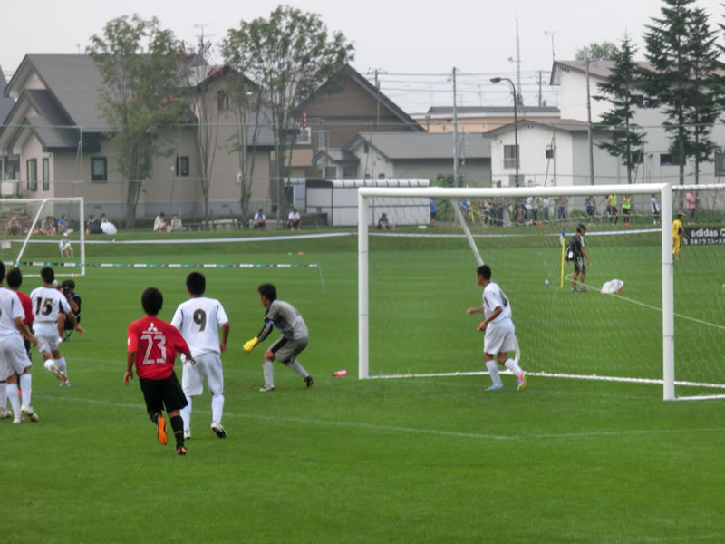 14分に、ペナルティエリア少し外くらいで取られたフリーキックのチャンスから、危ない場面を作られるものの1番関敦也が好セーブで防ぎます。