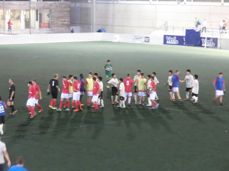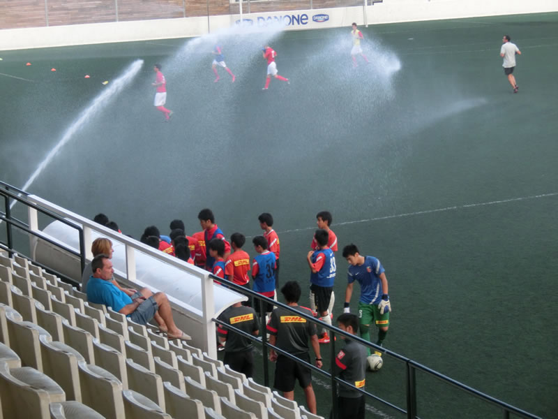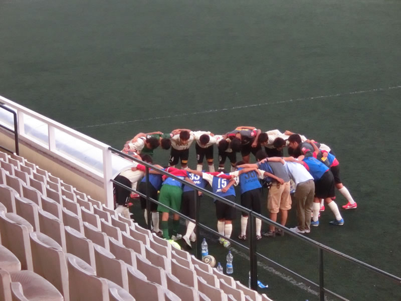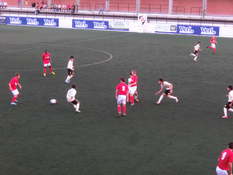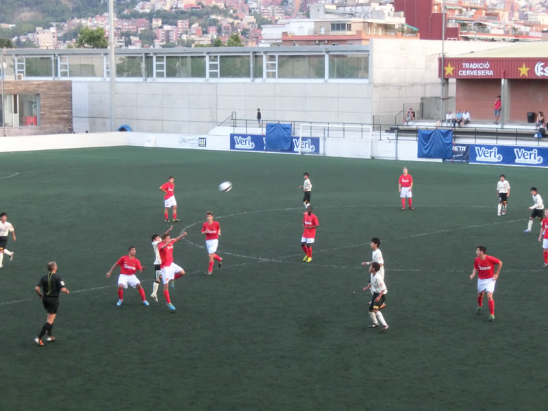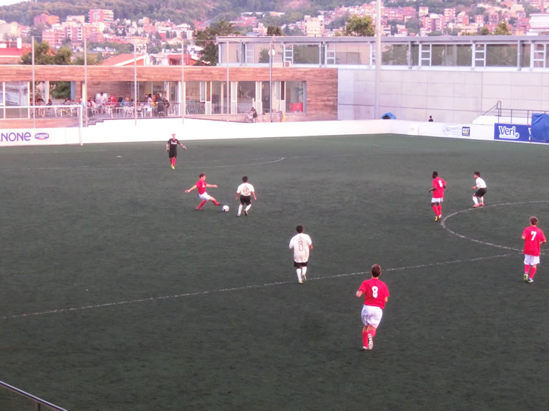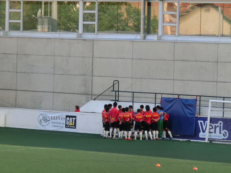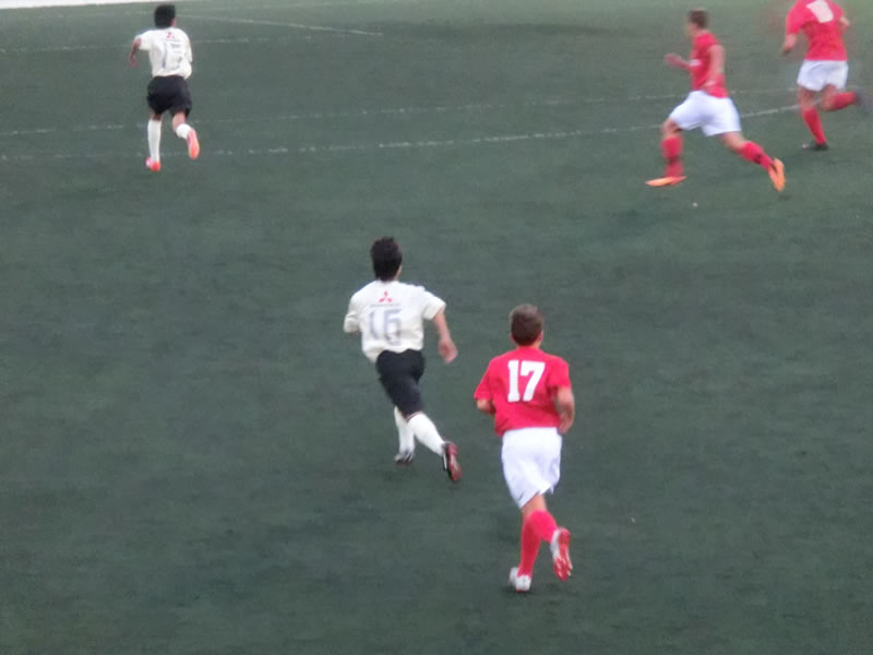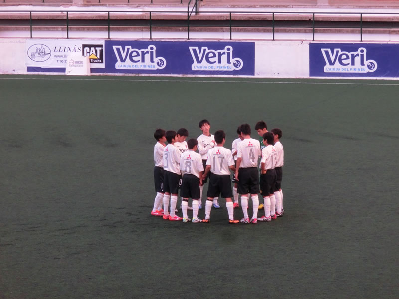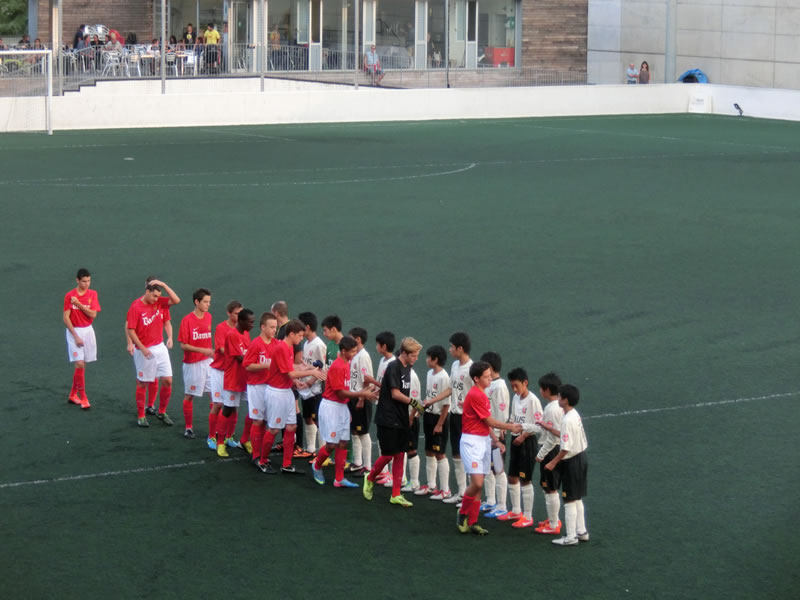 前半と後半おそらく相手はほぼ全選手を交代して前半40分、後半40分はまったく別のチームで臨んできたのですが、前半のチームは、スペインでこういうサッカーを見ることになるとは想像だにしなかったというくらいのガツガツ系のチームで、大きめの前線の選手がものすごい剣幕でプレッシャーをかけてくるようなチーム。