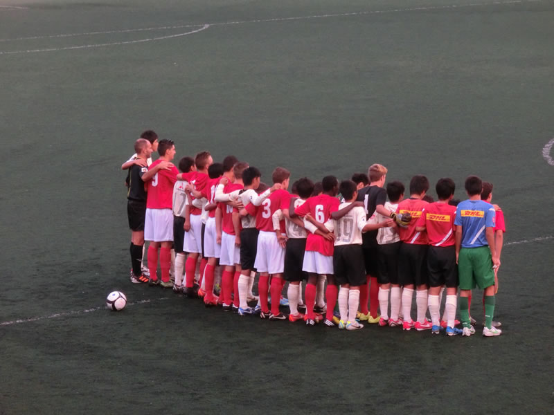 この試合は、正直相手チームに対して驚くことがかなりたくさんありました。人工芝の会場に試合前にかなり放水していたことにもまず驚かされたり、あとは、線審がおらずすべて主審を務めていた方が判断して笛を吹いていたのですが、オフサイドについての判定のかなり曖昧な感じは、なんともなんともでしたが。。