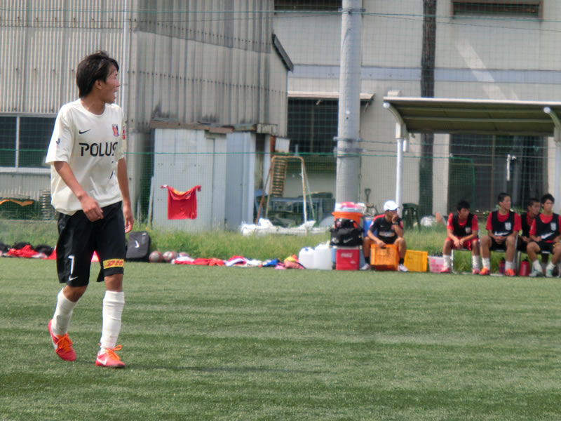 この同点ゴールの直後に相手に決定的な形を作られたものの18番関口亮助がタイミングよく飛び出してこのピンチの場面を防ぎ、流れとしてはより浦和に傾いていくかに思われたものの、35分に遠くて細かくは見えなかったものの、おそらく前半の失点と同じような形でもったいない失点を喫してしまい1-2と再びリードされてしまいます。