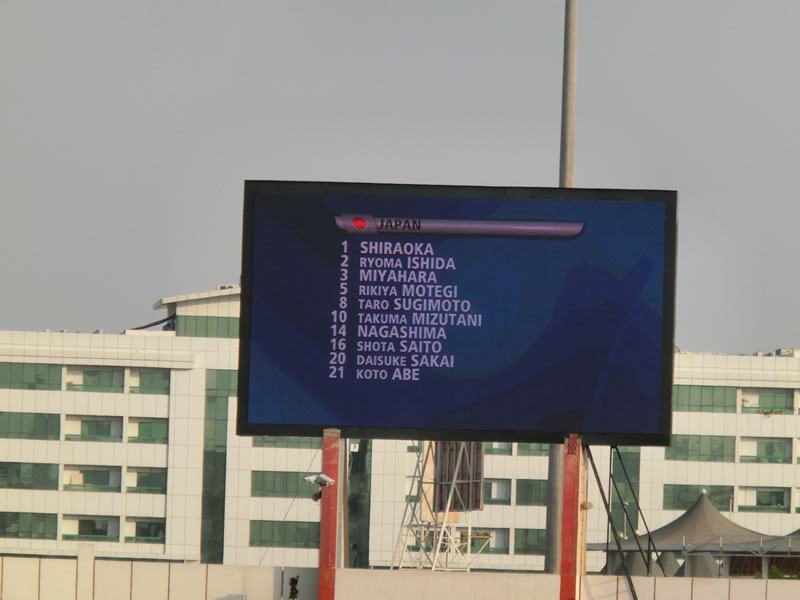 さてさて、24日の試合はグループステージ3戦目にして初めて17時キックオフの試合でした。試合の途中には暗くなるのですが、まだ日のあるうちからの試合ということで暑さの部分がこれまでと比べて心配されましたが、あくまで観客席レベルでの体感の話ではありますが、20時キックオフだった第2戦よりも、いくぶん気温が低く感じたことや、風も涼しげに感じられましたが、やはり湿気を帯びた空気の中での試合になるため、プレーする選手にとっては、少しはましだという程度くらいだったと思います。