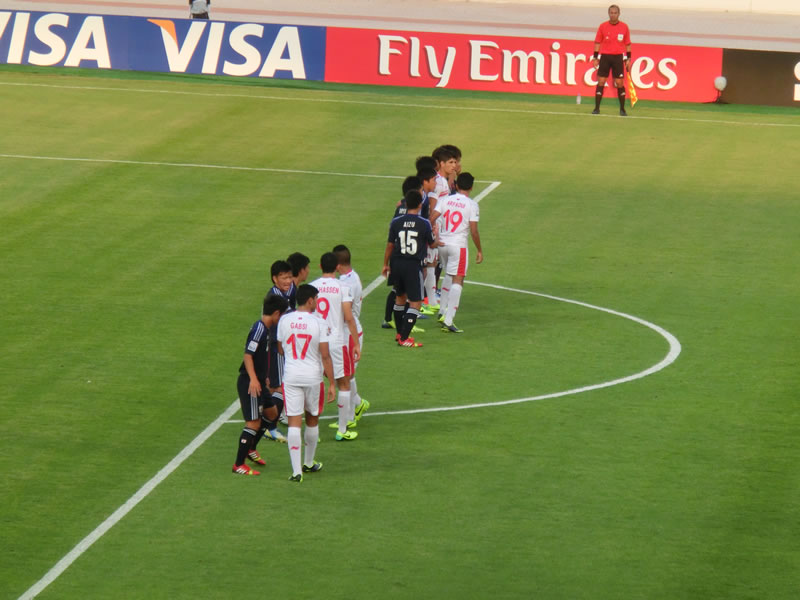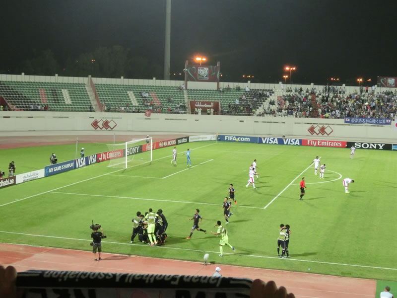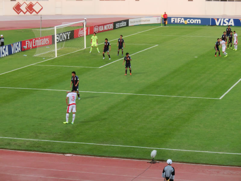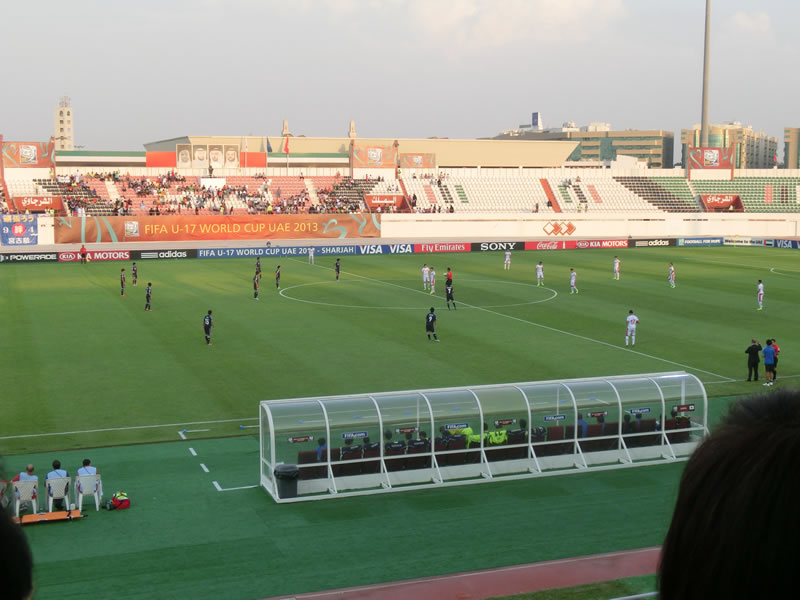 まず、24日の行われたU17ワールドカップグループステージ第3戦のチュニジア戦です。最初に載せた写真は、試合の行われたシャルジャスタジアムを道路側ではない位置から撮ったものです。もともと砂漠だったところを開発したことがわかるように写真を撮ってみました。