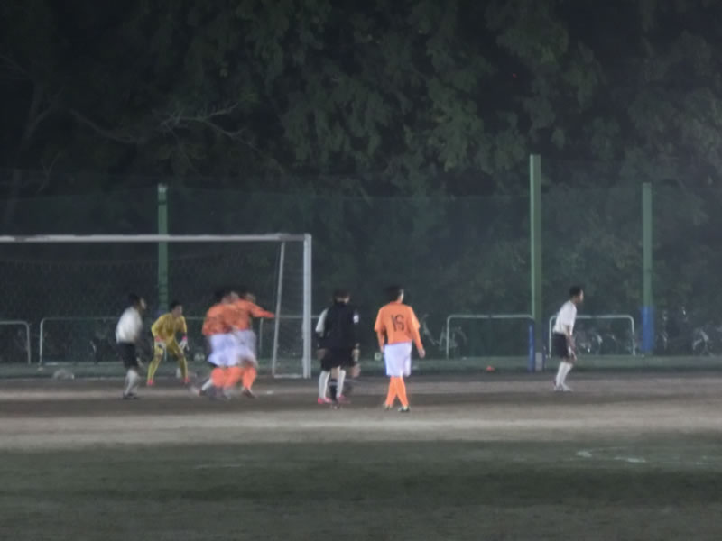 そして、迎えた26分に、遠くてどの選手だかはっきりは確認できなかったのですが、おそらく10番萩原大智が抜け出して、ゴールの上隅を狙ったシュートを放ち、これをキーパーがなんとかはじいたものの、それを誰か(得点者わからずw)が押し込んで1点を返します。