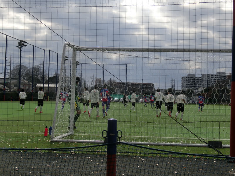 右前線でパスを受けた2番細田真也がドリブルで仕掛け、角度のないところでクロスを上げるような態勢から直接ゴールを決めます。一見、クロスがそのまま入ったようにも見えますが、ゴール真裏から見ていた様子では、ゴールを見てから狙いすましているように見えましたし、狙っての見事なゴールと言えると思います。