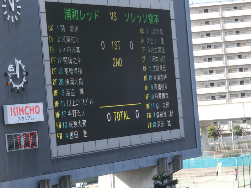 浦和レッズジュニアユースの1回戦の相手は、ソレッソ熊本というチームになります。情報がよくわからず、公式プログラムを友人と眺めつつ、九州リーグで3位、失点が最も少ないチームなんですね~、ちょっと苦手なタイプかもですね、みたいな話をしつつ、試合を観戦しました。