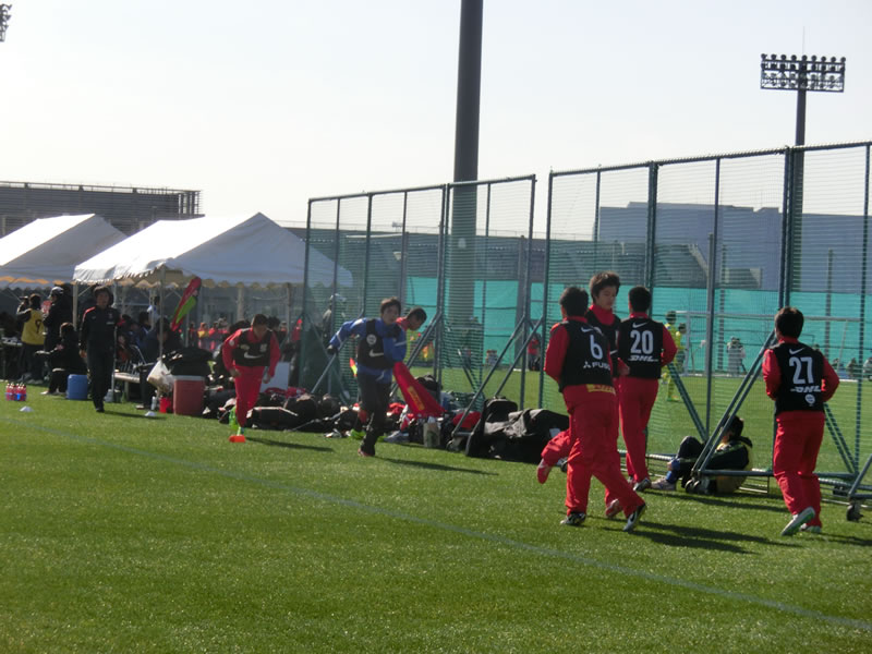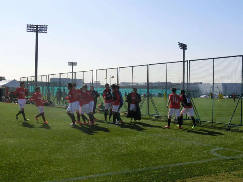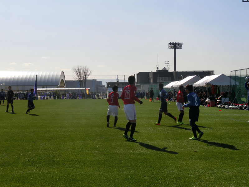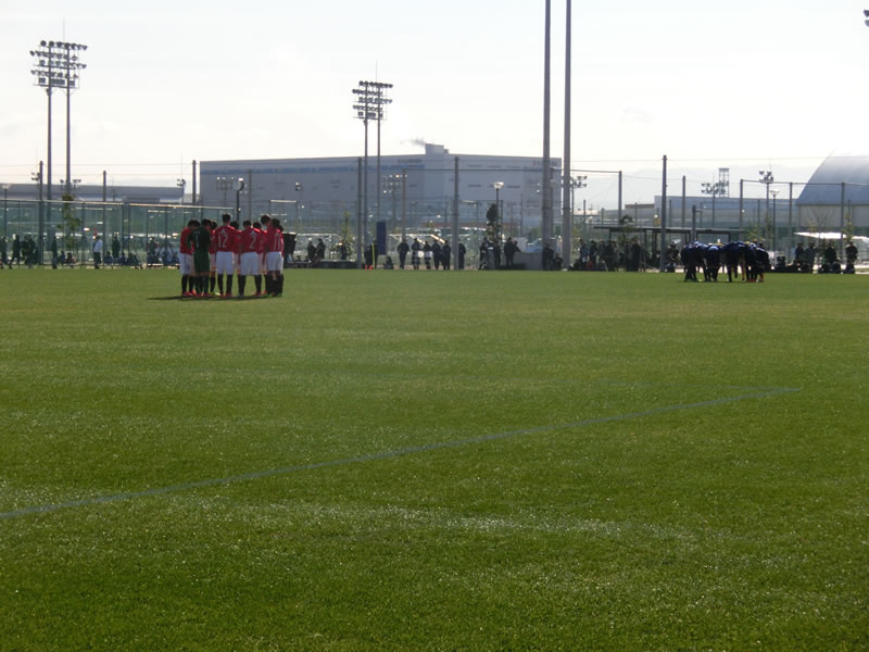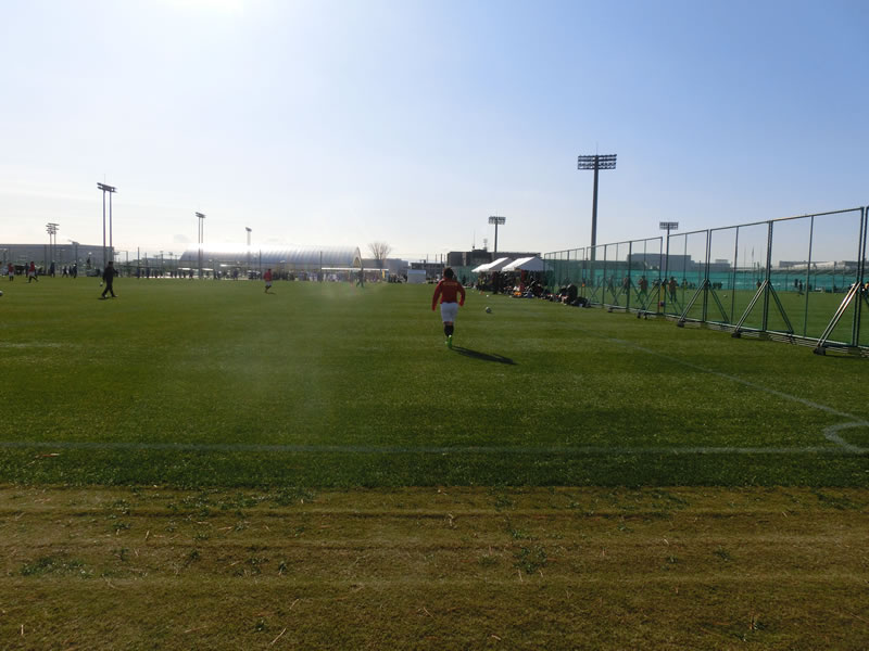 浦和の初戦は、長居公園内のキンチョウスタジアムが会場でしたが、2回戦からは、ずっとJ-GREEN堺での試合となります。S1はスタジアム型で当然観戦しやすいのですが、準決勝、決勝までお預け。2回戦は、S4というちょうど、天然芝が横に4つ並んだ会場の一つになるのですが、S5とS3に挟まれたグラウンドになるため、試合観戦は両ゴール裏のネット越しに見る感じになります(今年のユースの3年生がジュニアユース3年生だった時に同じ高円宮杯でS3で試合をした時もS2とS4に挟まれていたのを思い出します。)