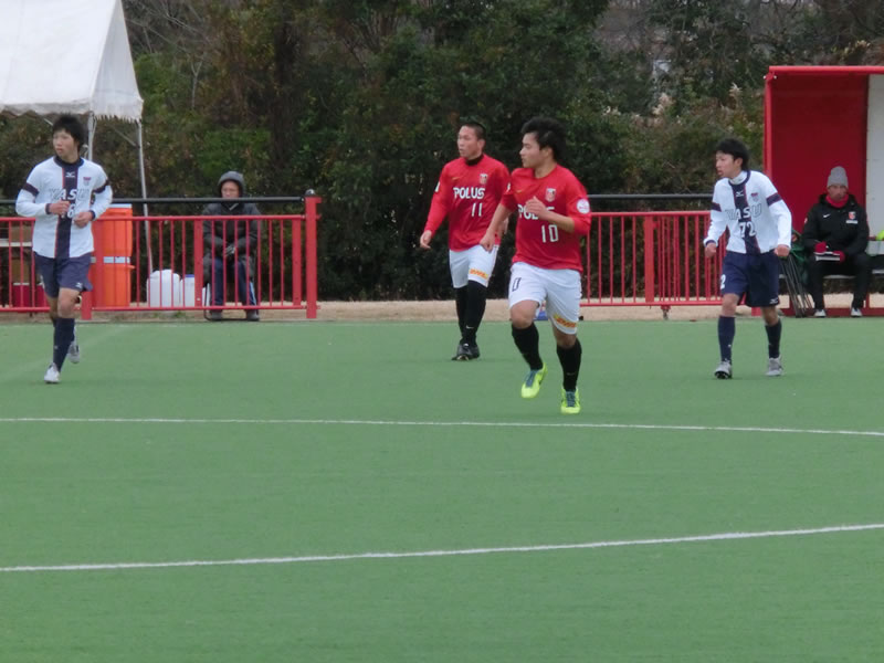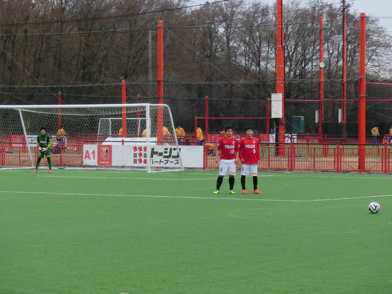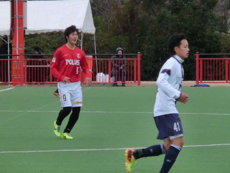 開始から1,2分で早くも浦和が、9番小島良太のミドルシュートで先制し1-0となります。