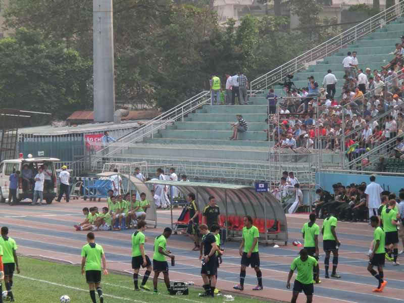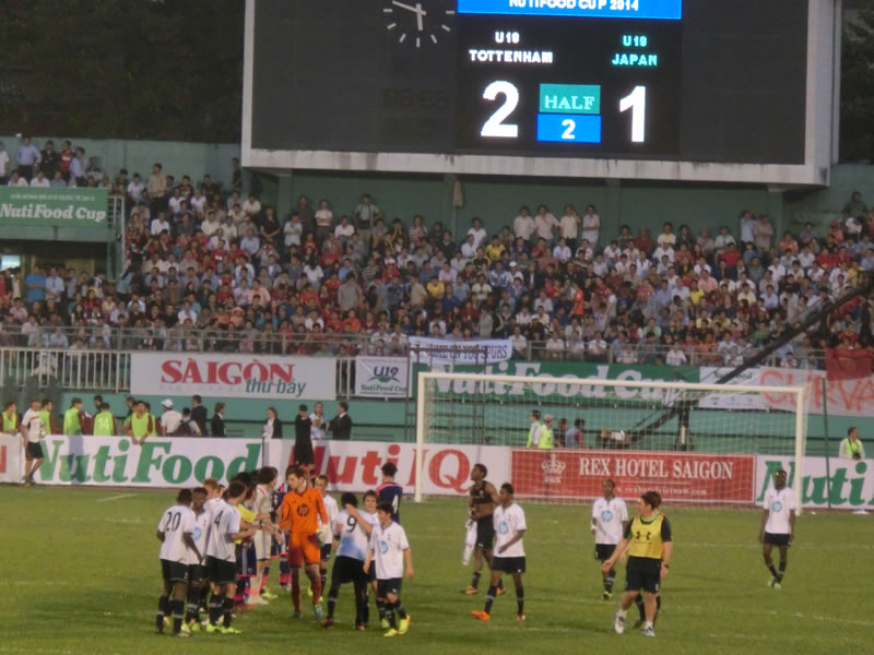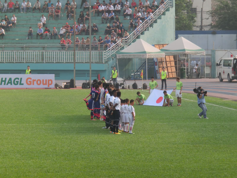 大会1日目は、15:40~U19日本代表vsU19トットナム、18:00~U19ベトナム代表vsU19ASローマという流れでしたが、現地の方としてはメインとなるU19ベトナム代表の試合前から、思った以上に多くがスタジアムで観戦する形となり、ベトナム代表の応援エリアなど、すでに関係ない試合でも太鼓使ったりして盛り上がっていたりと、とにかく驚きました。何しろ、フル代表ではなく、U19ですからね。