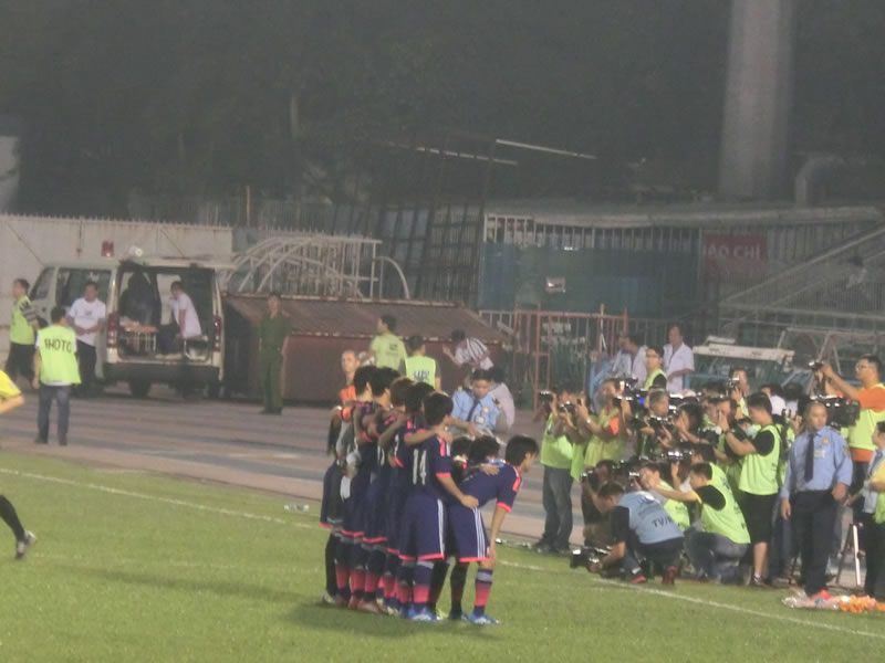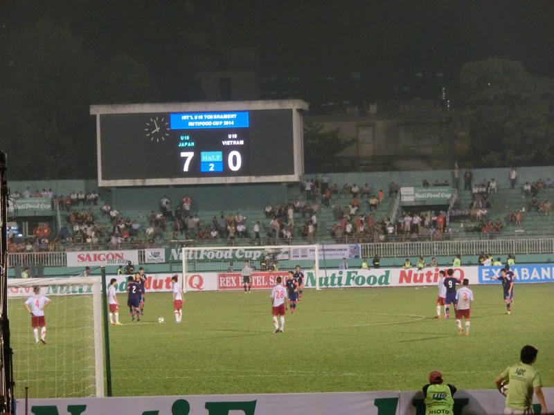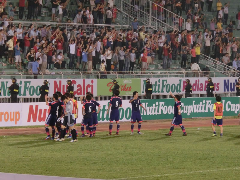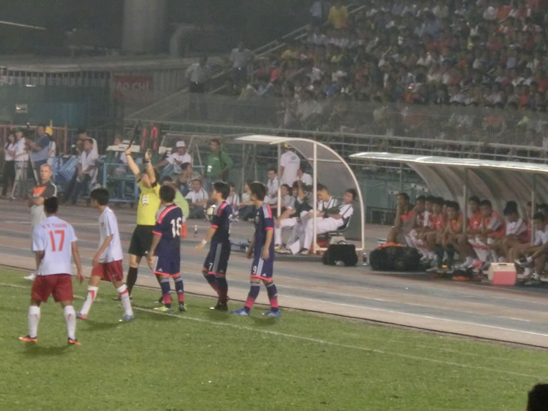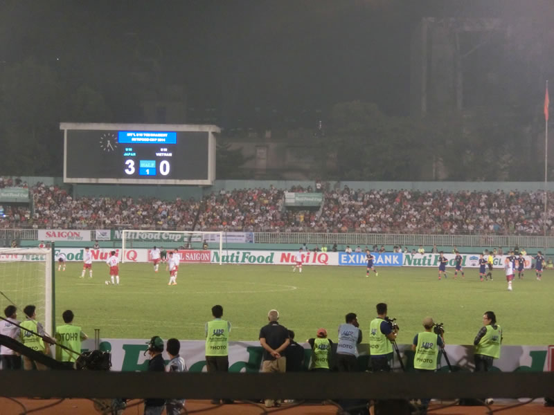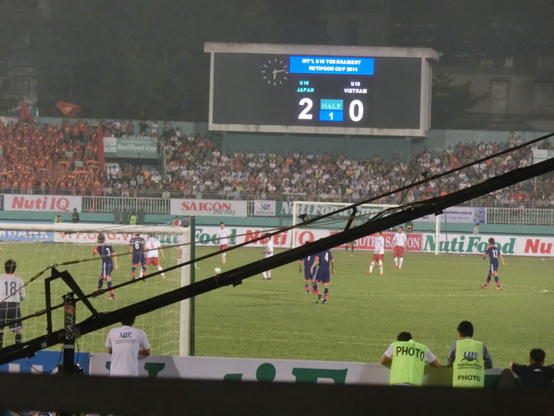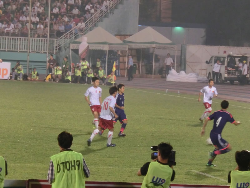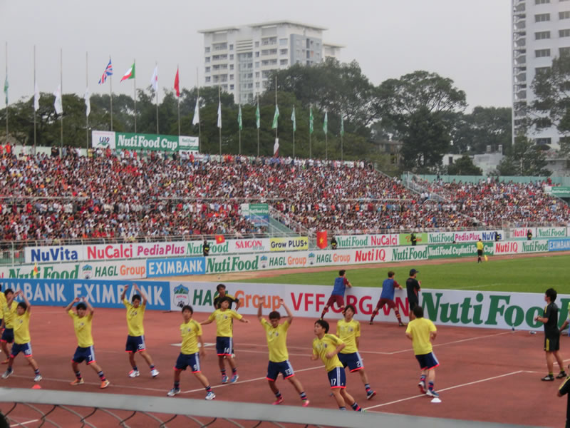 ということで、第2戦の8日は、地元U19ベトナム代表との試合になります。第1戦の時同様に、チケットは完売で、スタジアムは超満員という状況になりました。本当にフル代表以外のカテゴリでここまで盛り上がるベトナムという場所には驚いています。