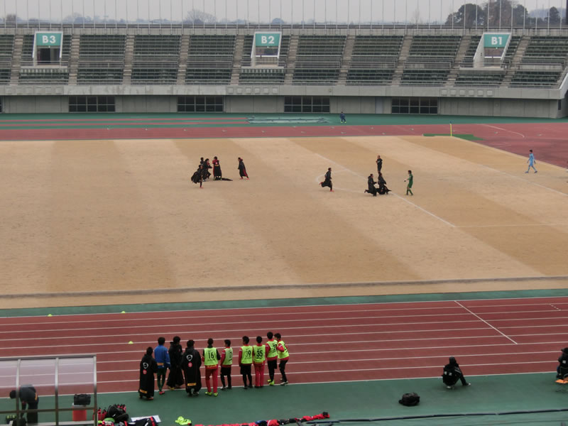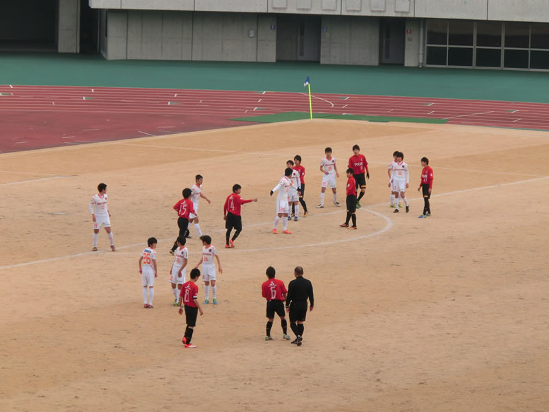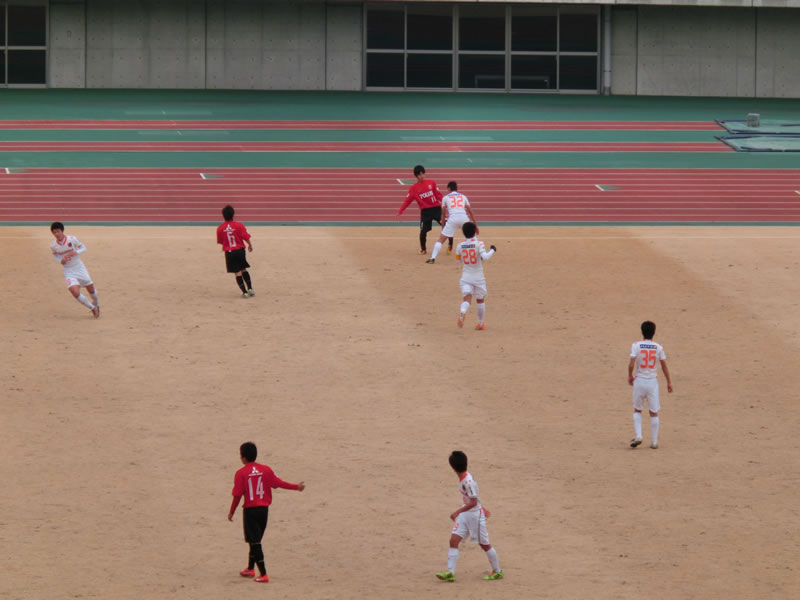 11分には、フリーキックのチャンスで、6番菊地泰智の上げたボールを16番橋岡大樹がヘッドで狙うもわずかに枠を外れます。