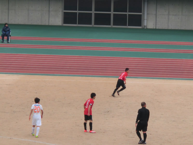 延長前半3分に、15番大西翔也からの縦パスに14番シマブク・カズヨシがドリブルで仕掛ける場面を作り、更に23番北村龍馬からのパスを8番立川将吾がワンタッチで前に流し、これが味方に通ればと言う形を作り、9分に14番シマブク・カズヨシが前線でキープし、攻撃参加した15番大西翔也が仕掛ける形を作ります。