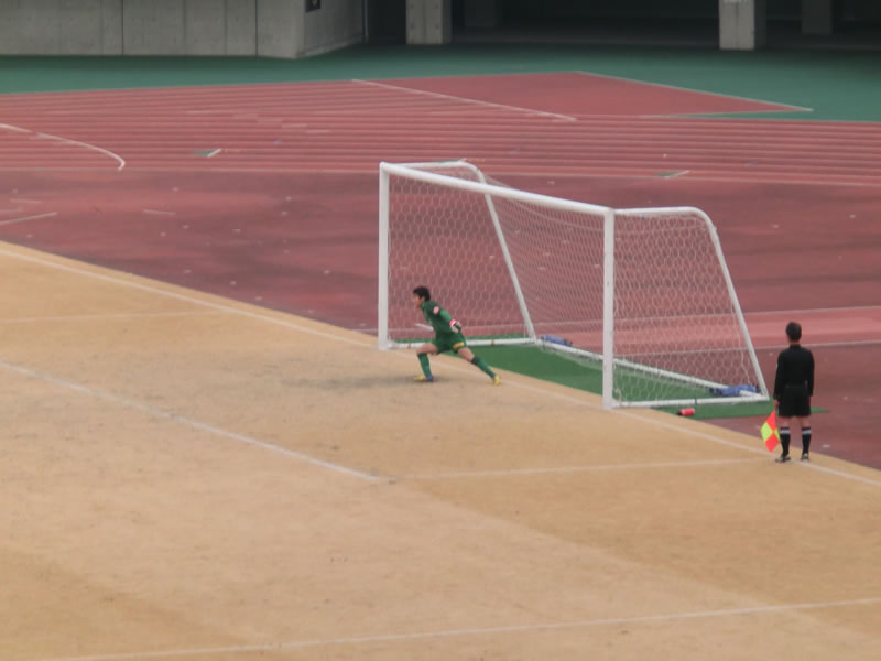 15分に、この試合初めて、遠い距離からのシュートが枠を捉える危険なシュートを放たれたものの、ここは1番高草木天平が見事に反応し、片手ではじき出します。