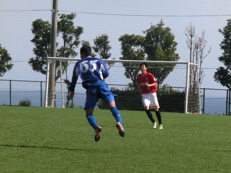 おそらく、この試合最初のゴールにかなり迫った場面と思われるのが、30分の5番茂木力也からのロングスローを受けた9番小島良太の思い切ったシュートを相手キーパーがはじいたところに、素早く23番松崎洸星が反応しましたがわずかに相手の方が早く押し込むことはできませんでした。