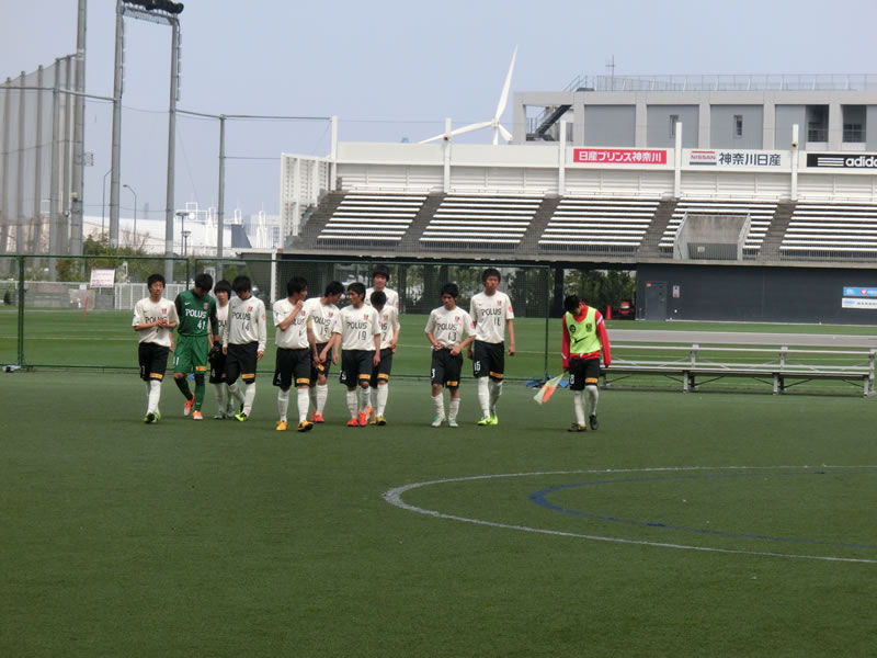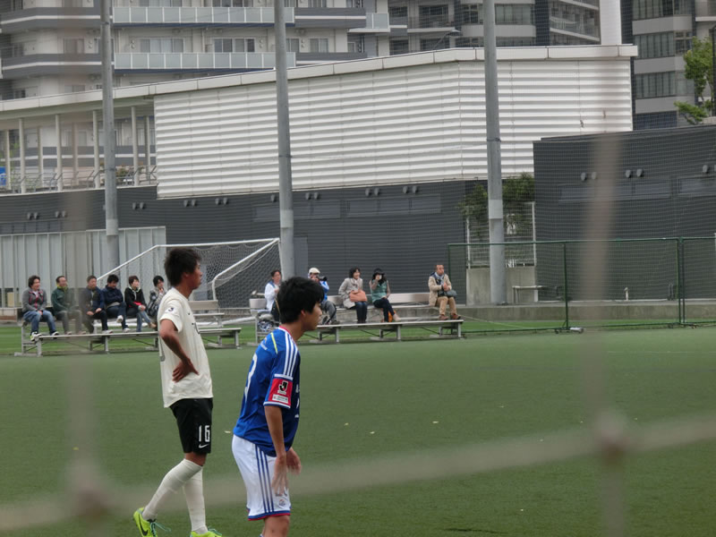 もう4月も後半に入っていて、暖かい日も増えているようですが、とにかく土曜日は寒かったですね。観戦したマリノスタウンの人工芝のピッチの横は、隣のビルで日陰になり、風も強めだったので、完全に冬の服装でもまだ寒い感じもしました。