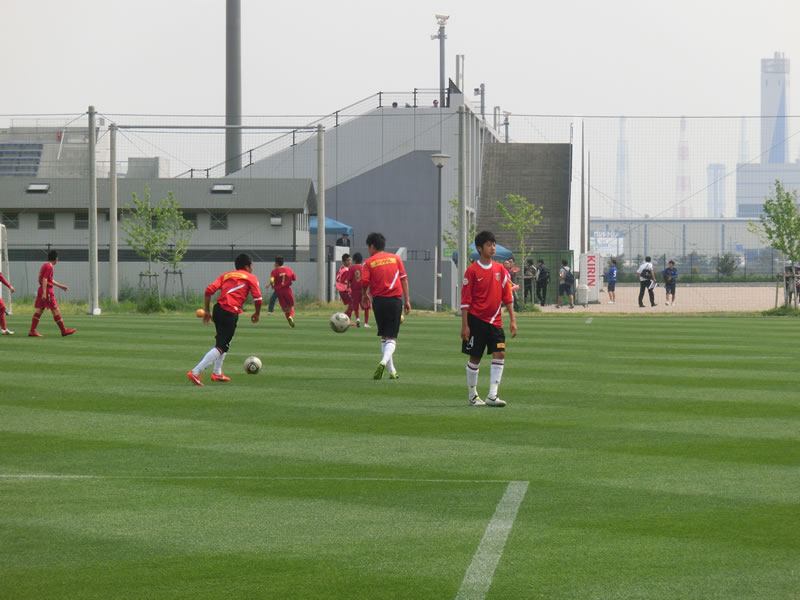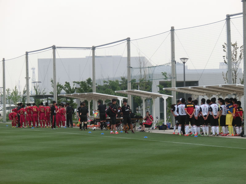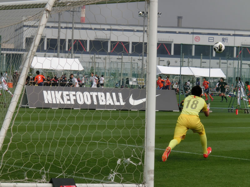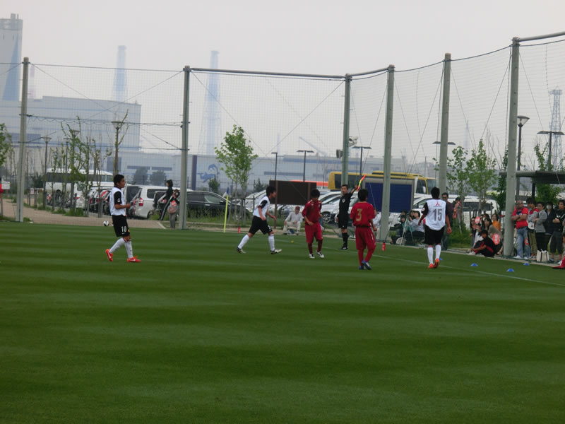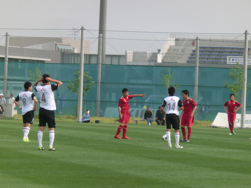 ちょうど、この大会の直前に観戦した、関東U-15リーグの東京ヴェルディジュニアユース戦の時とメンバーが同じで、中盤の左に入っていた15番長谷川魁哉が右に、右に入っていた7番菊地泰智が左に代わっていました。